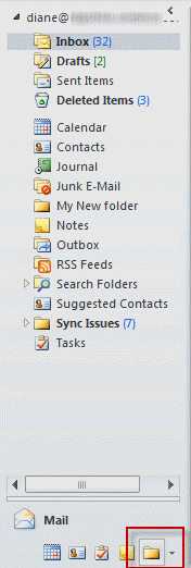 The Mail Navigation Pane has a Favorite Folders list at the top of the pane. If you don't see the Favorites section, you may be using the Folder list view. You can switch back to the mail folder by clicking the Mail button at the bottom of the pane or by pressing Ctrl+1.